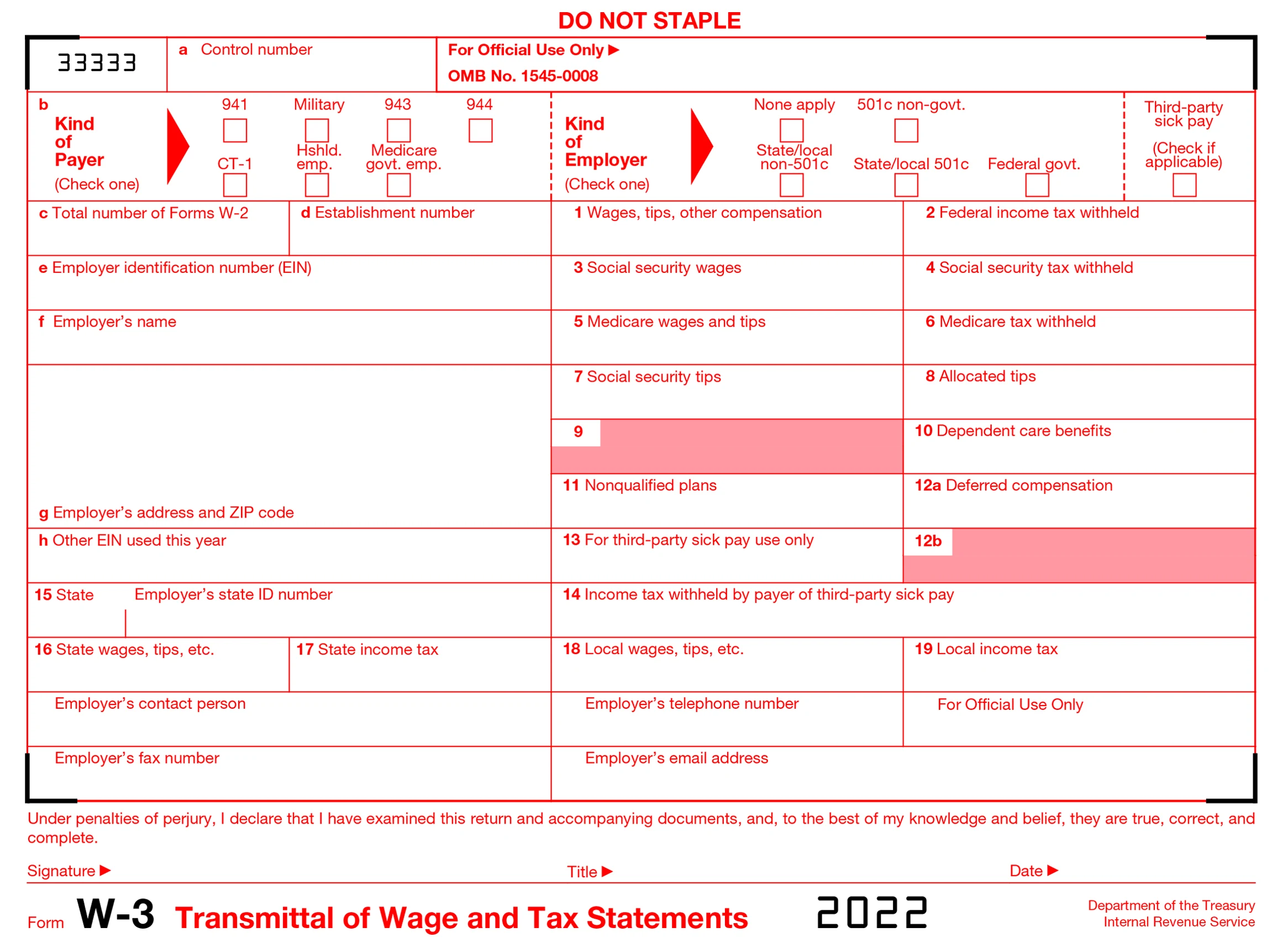 • W-3 Form 2022