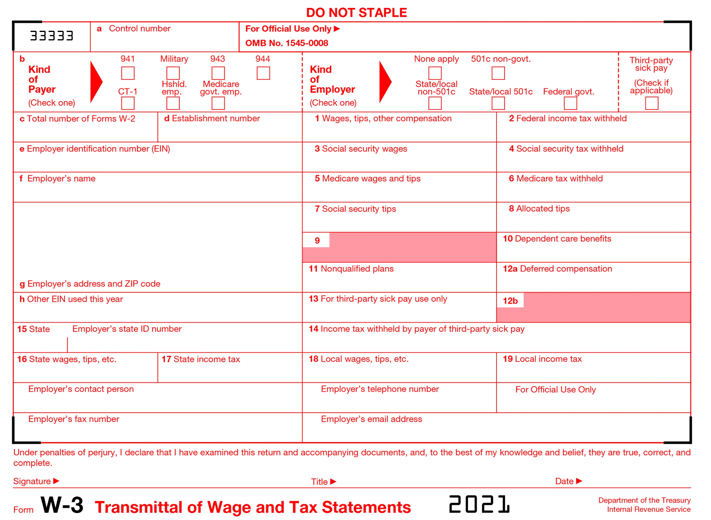 Download PDF Create 2021 W-3 Form